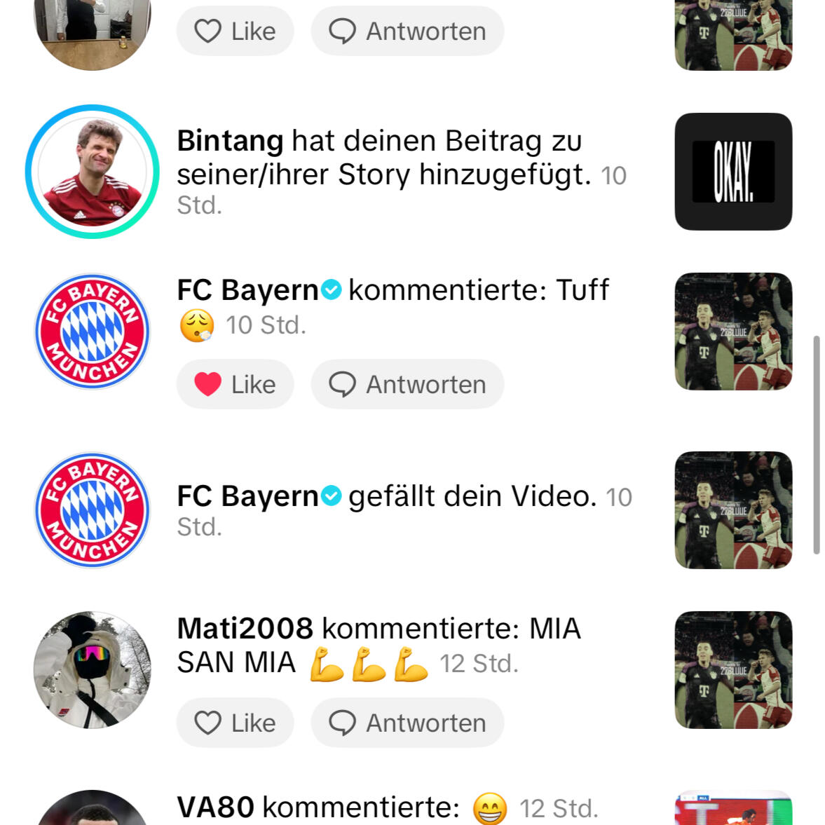 My content has been recognized by FC Bayern München, one of the biggest football clubs in the world, through a like and a comment on one of my edits.